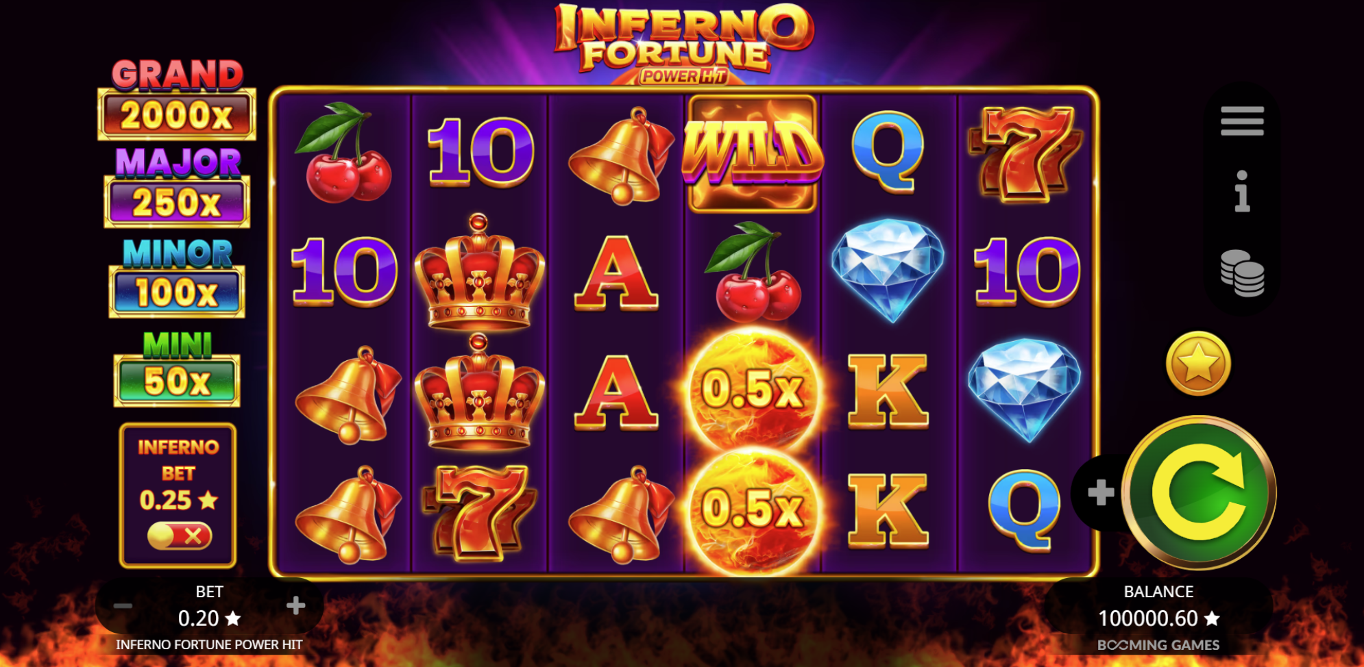 《Inferno Fortune Power Hit》支持广泛的投注额度,适合不同预算的玩家。游戏波动性较高,中奖频率不算频繁,但一旦触发大奖,奖金数额非常诱人,适合喜欢挑战极限的玩家。